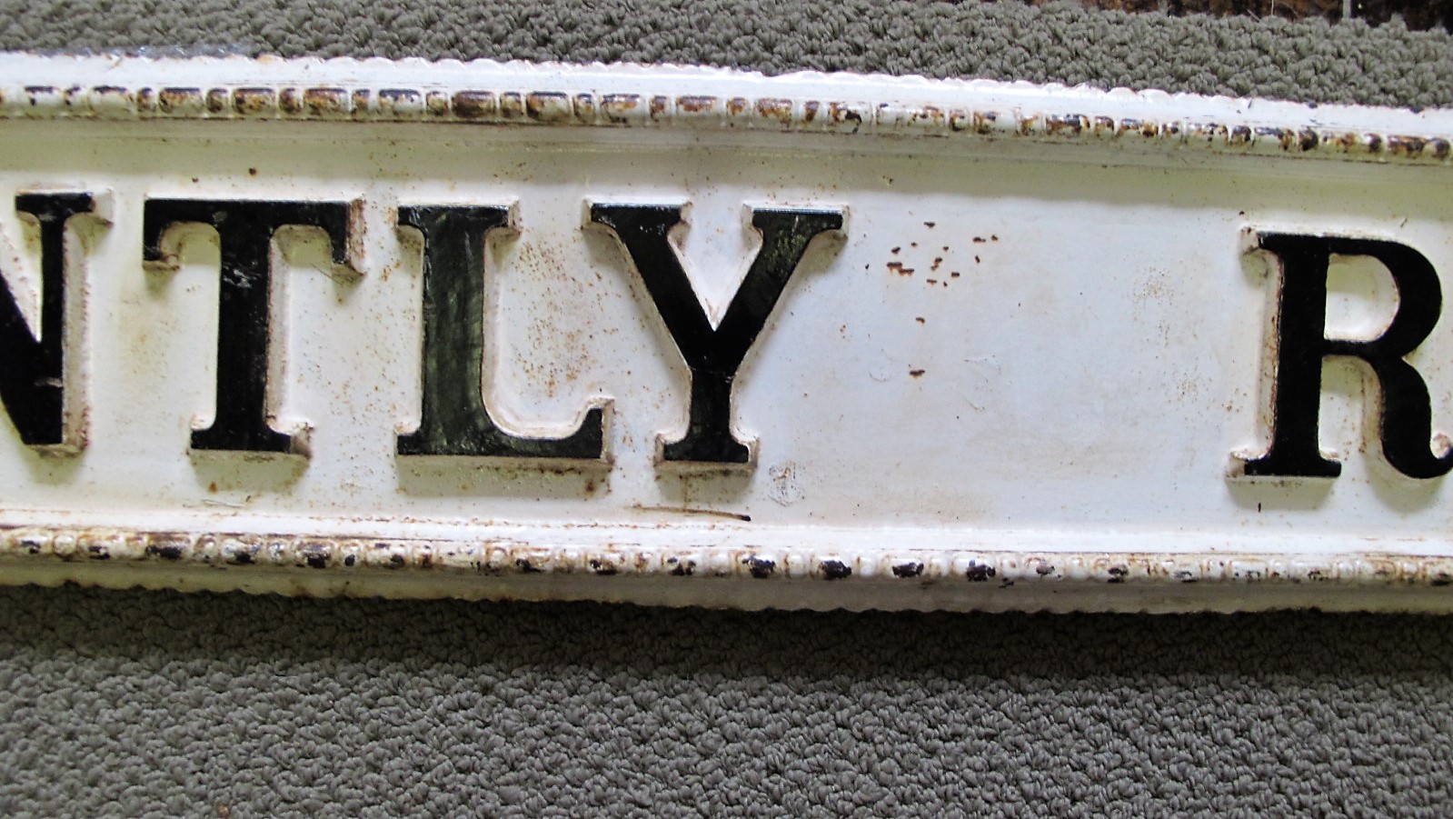 LATE 19th CENTURY CAST IRON STREET SIGN "HUNTLEY RD. 16" C1890'S |
