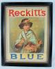 Caption: ORIGINAL RECKITT'S BLUE ADVERTISING CARD IN EARLY EBONISED FRAME C 1920'S |