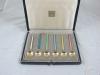 Caption: CASED GILDED STERLING SILVER & ENAMEL TEA SPOONS, MARKED MEKA STERLING DENMARK, C1930'S |