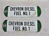 Caption: ENAMEL TAGS FOR CHEVRON GASOLINE & DIESEL, C1950'S SOLD SEPARATELY. |